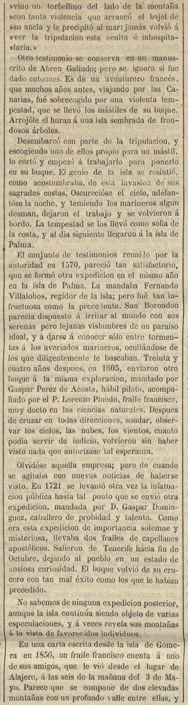 Es el siguiente un artículo absolutamente maravilloso e imprescindible, que trata un asunto que viene de antiguo: el de la mítica isla de San Brandán, el fantástico viaje que realizó el monje escocés, y los espectrales avistamientos de esta isla viajera. Atención a la figura del discípulo de Brandán, el monje Maclovio (o Malo, o Maló) y sus poderes para ¡resucitar a gigantes! Sobre este asunto y otros afines, descartados por la escuela bolandista jesuítica de hagiografía como apocrypha deliramenta, escribieron Washington Irving, Emilio Salgari e incluso servidor de ustedes, entre otros muchos.